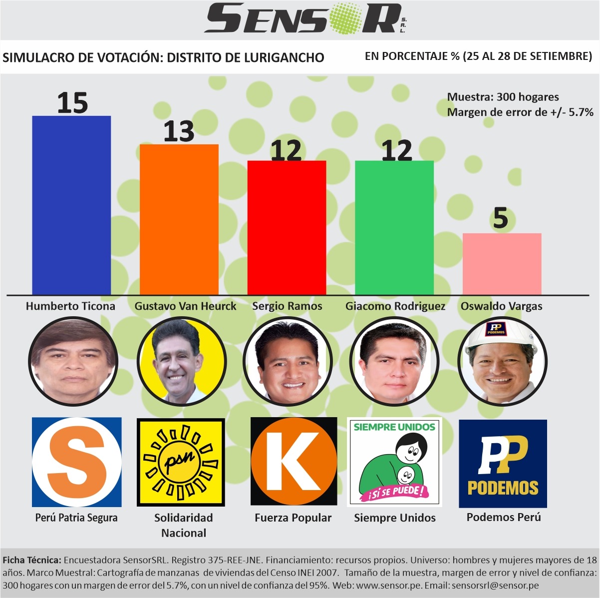 Asimismo a nivel distrital se evaluó la intención de voto de dieciocho distritos de Lima, siendo los principales resultados los siguientes: